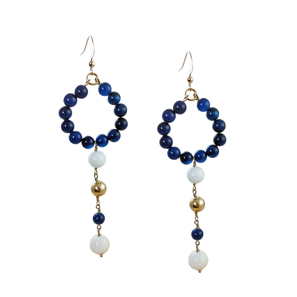 DETAILS Jade beads, blue 6mm Porcelain beads 14K gold filled round beads 14K gold filled ear wire COLOURS Blue White Gold SIZE & FIT Drop ...
