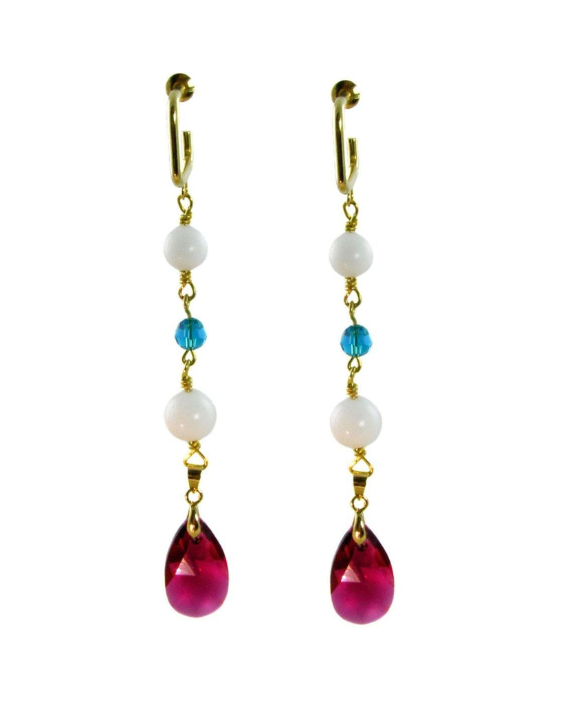 DETAILS: Swarovski Crystals, Porcelain beads, gold plated earring posts COLOURS: White, Fuschia, Turquoise, Gold DROP OF EARRINGS: 8cm